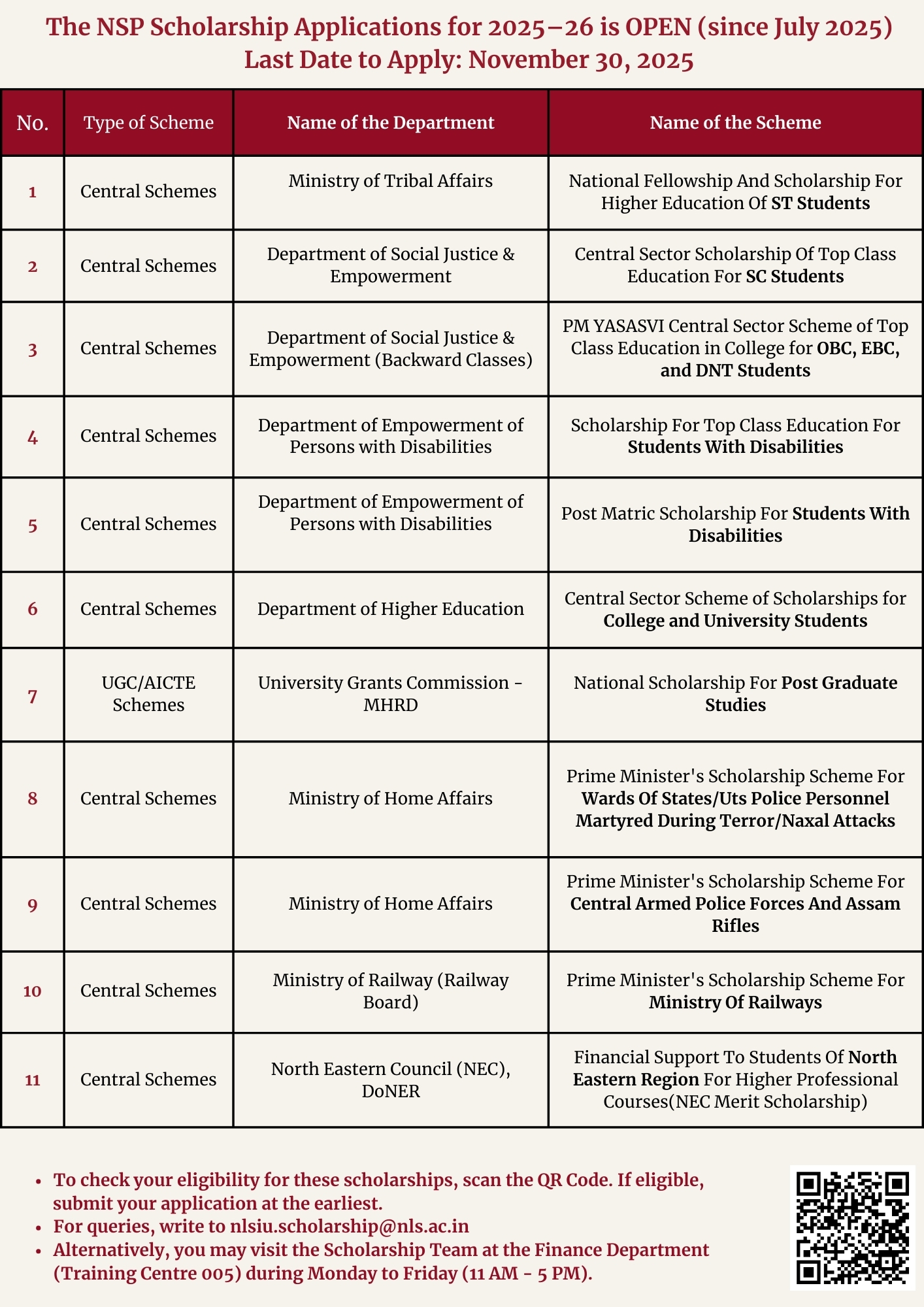 Many students assume they are not eligible, but may actually qualify. You can check your eligibility by entering your basic details at this portal. If eligible, NLS students may submit their application by November 30, 2025.