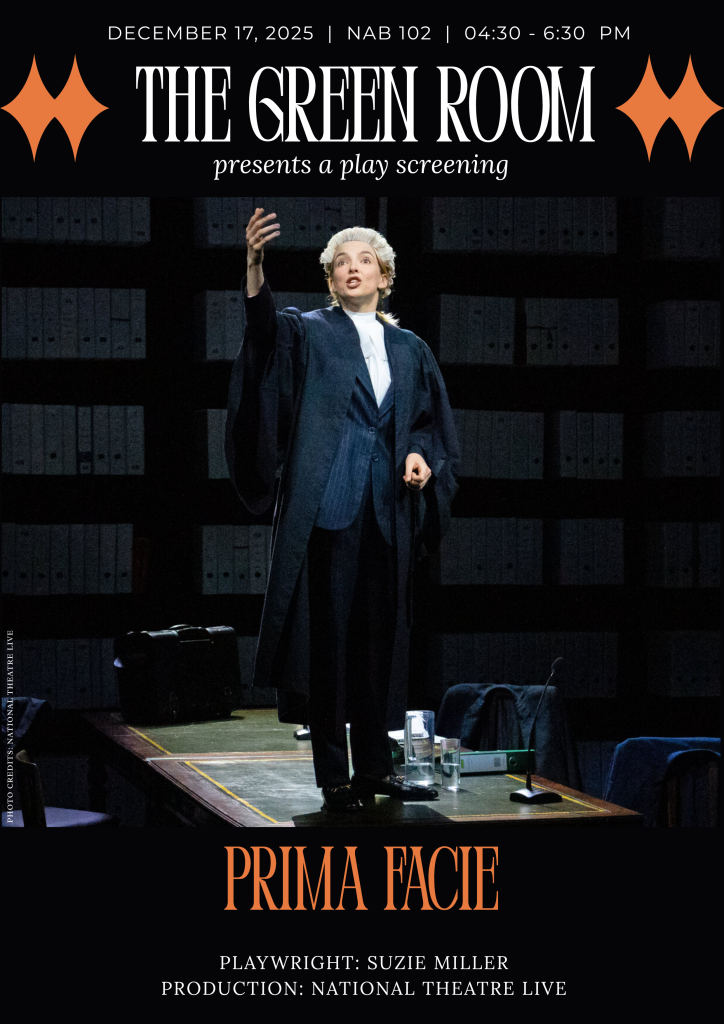 The student-led theatre effort at NLS, The Green Room, presents a screening of Prima Facie (A National Theatre Live production).