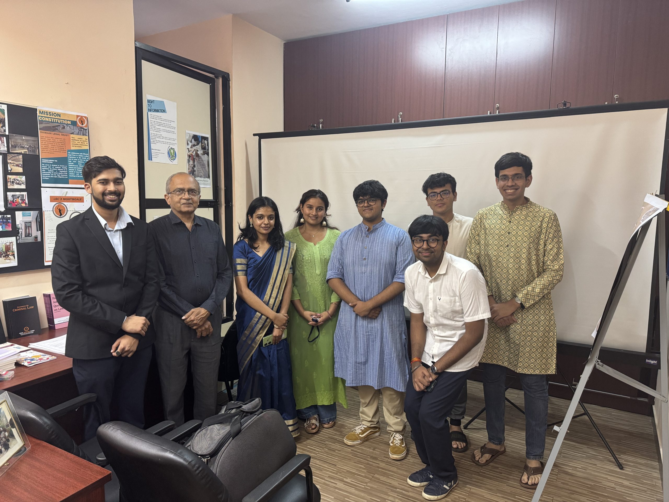 The month began with a Legal Services Exhibition, inaugurated by Faculty Advisor & Director of Clinics, Darshana Mitra. A highlight of the event was the release of a short film chronicling LSC’s decade-long journey. Visitors, including students, faculty, and alumni, explored the Clinic’s evolving archive, featuring photographs from Legal Literacy Programs (LLPs), creative exhibits, and impactful projects. Further, Draft FAQ Booklets on Geriatric Rights prepared in collaboration with the Nightingale Medical Trust were released by Dr. Sarasu Thomas (Director, Manipal Law School), reinforcing LSC’s commitment to community outreach.