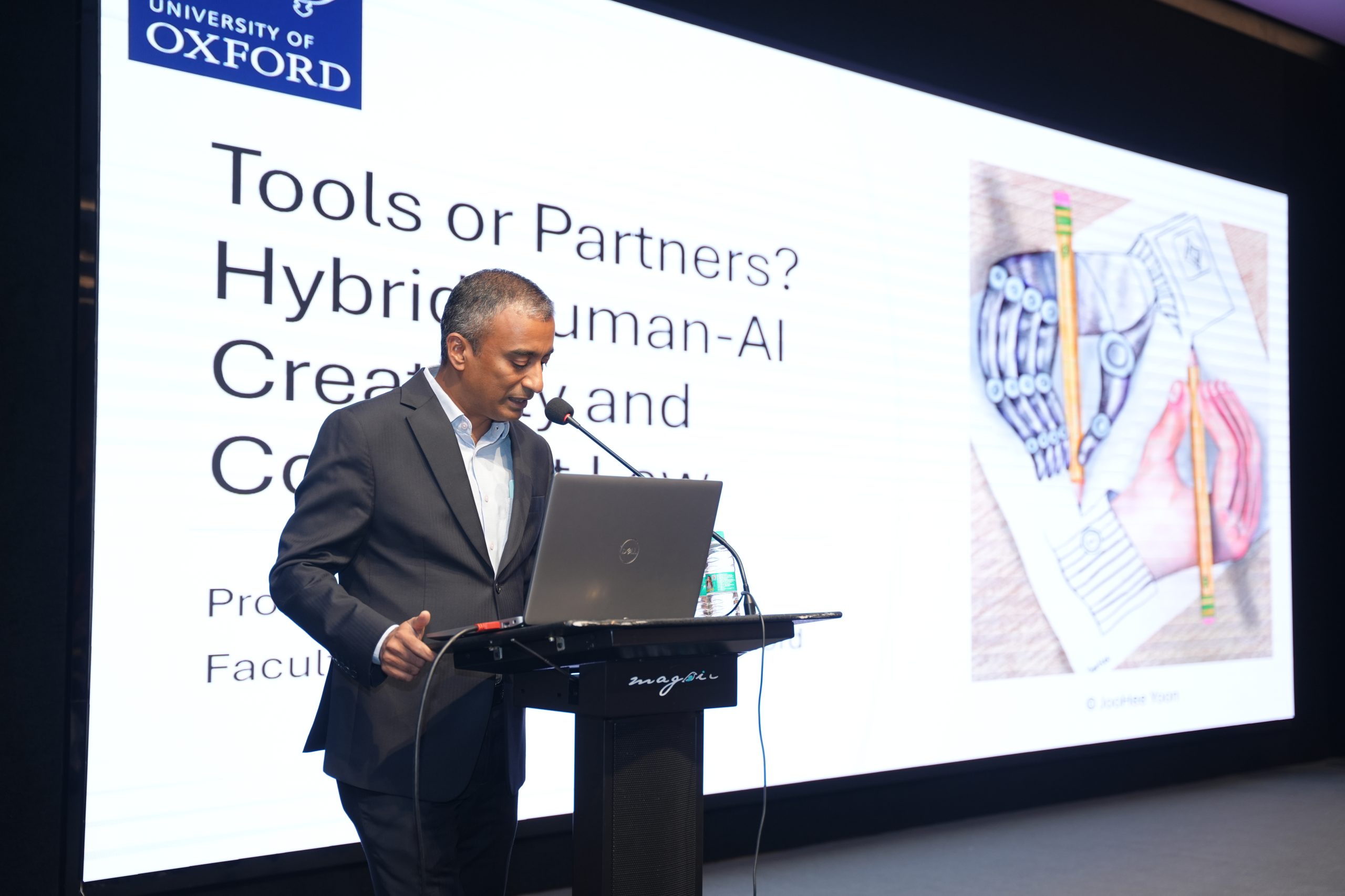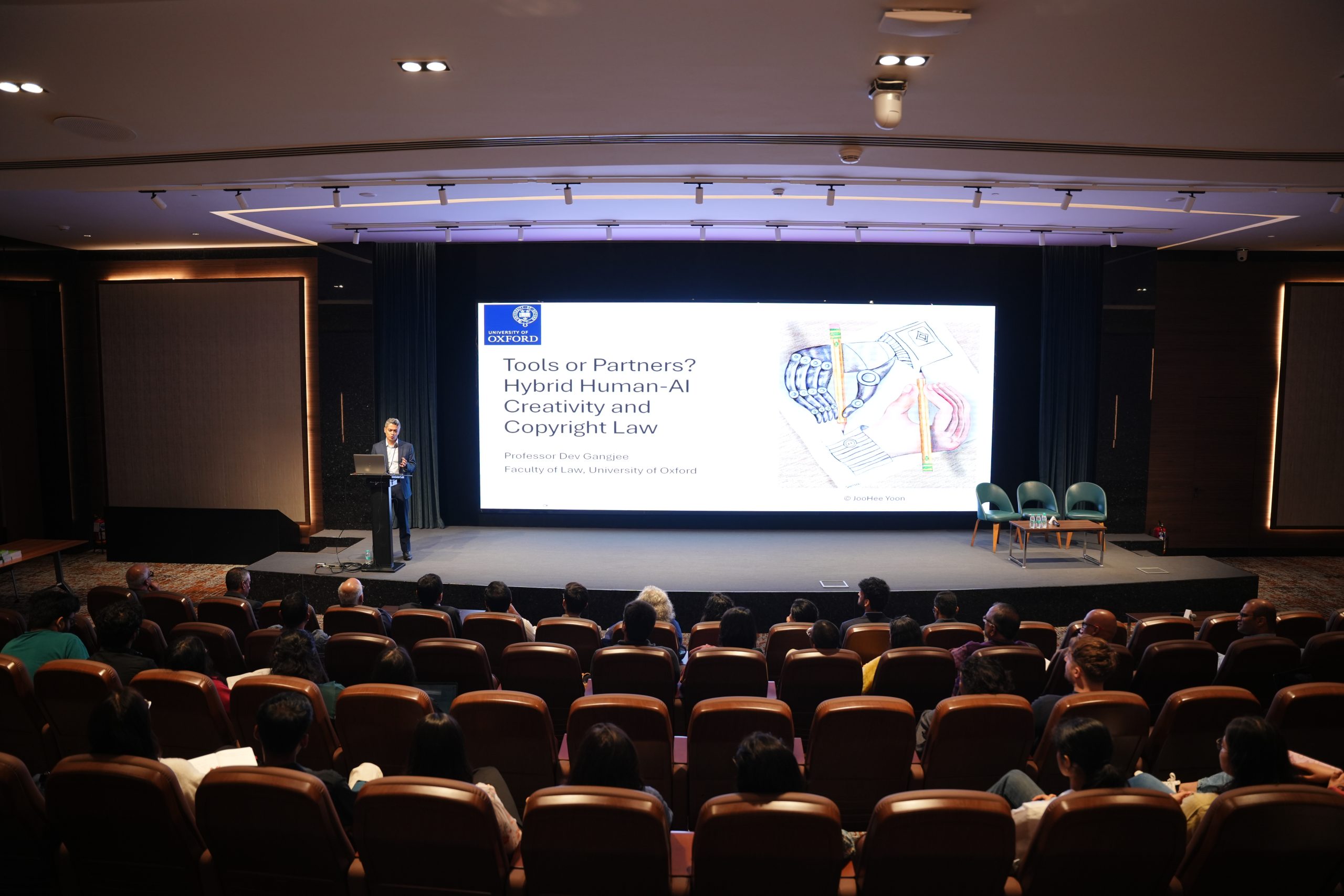 The event opened with welcome remarks by Prof. (Dr.) Sudhir Krishnaswamy, Vice-Chancellor, NLSIU. The inaugural lecture was delivered by Professor Dev Gangjee, University of Oxford on the topic “Tools or Partners? Hybrid Human–AI Creativity and the Boundaries of Copyright.” The lecture was followed by a discussion featuring Prof. Gangjee, Eashan Ghosh, National Law University Delhi, and Dr. Arul George Scaria, Professor of Law, NLSIU. The session saw an engaging Q&A with the audience, post-which Gayatri Luthra and Ananya Gaur spoke on behalf of the foundation. The vote of thanks was delivered by Sidharth Chauhan, Assistant Professor of Law, NLSIU.