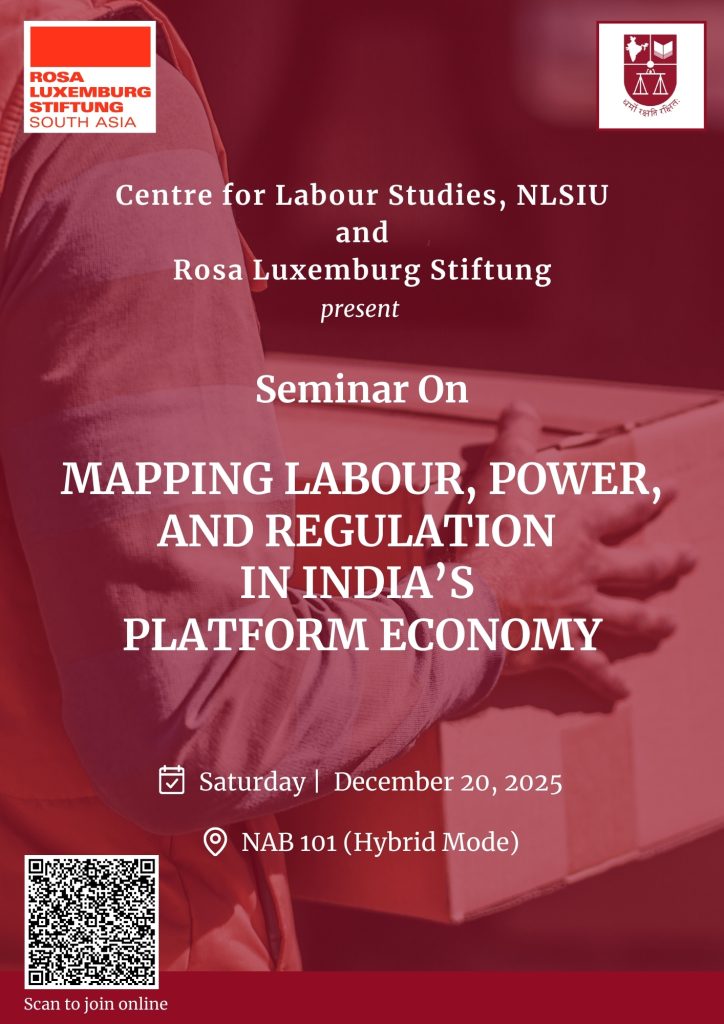 The Centre for Labour Studies (CLS) at the National Law School of India University, with the support of the Rosa Luxemburg Stiftung, is organising a seminar on ‘Mapping Labour, Power, and Regulation in India’s Platform Economy’ on Saturday, December 20, 2025.