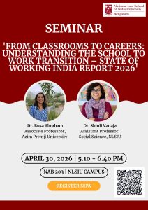 The Centre for the Study of Social Inclusion (CSSI) at the National Law School of India University (NLSIU), Bengaluru invites you to a public seminar on the topic, ‘From Classrooms to Careers: Understanding the School to Work Transition – State of Working India Report 2026,’ with labour economist Dr. Rosa Abraham. The session will be moderated by Dr. Shiuli Vanaja, Assistant Professor, Social Science, NLSIU.