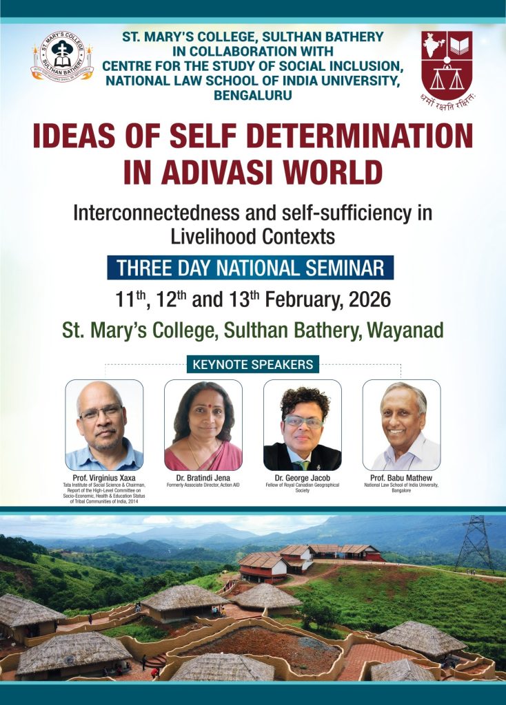 Three-Day National Seminar on ‘Ideas of Self Determination in Adivasi World’ | By NLSIU and St. Mary’s College, Sulthan Bathery