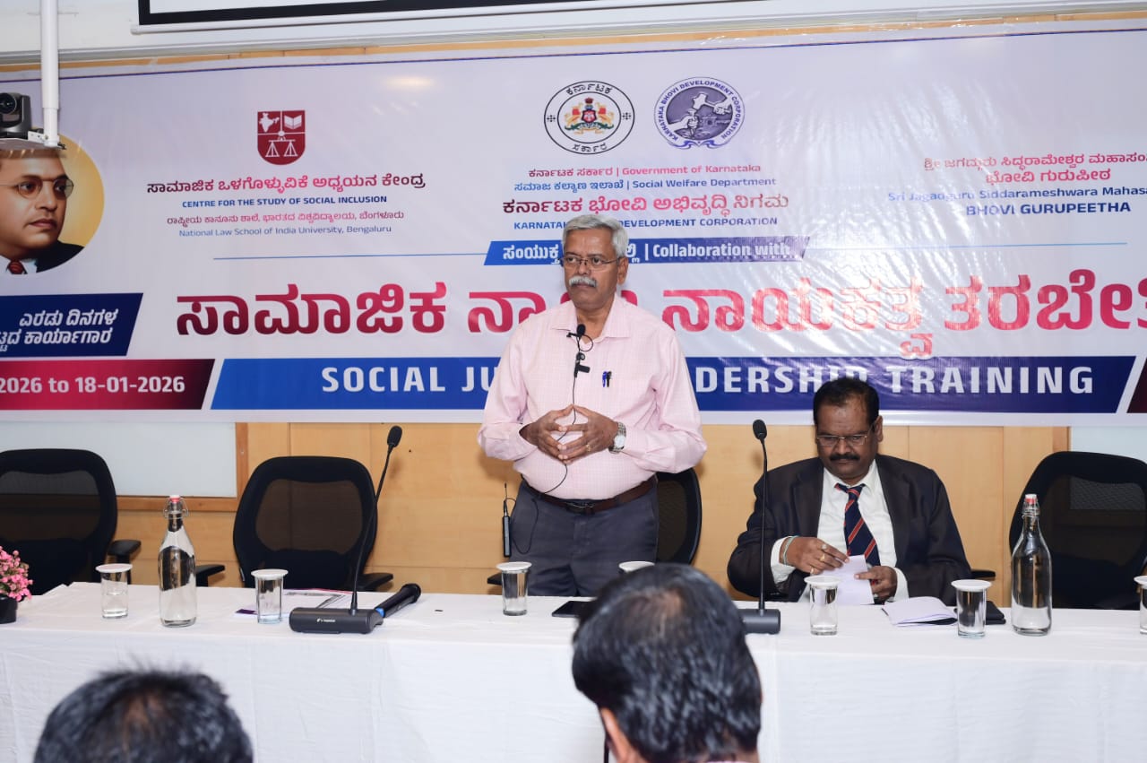 Recognising this critical gap, the Karnataka Bhovi Development Corporation, in collaboration with the Centre for the Study of Social Inclusion, National Law School of India University, conceived and implemented a state-level leadership training programme aimed at empowering Bhovi youth and community leaders with constitutional knowledge, legal awareness, and leadership skills. The workshop was held on January 17 and 18, 2026, at the NLSIU campus.