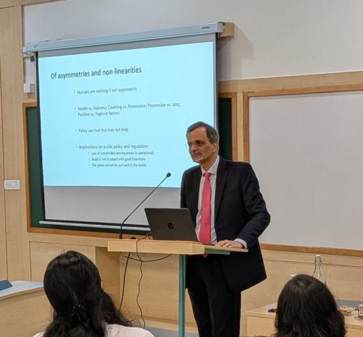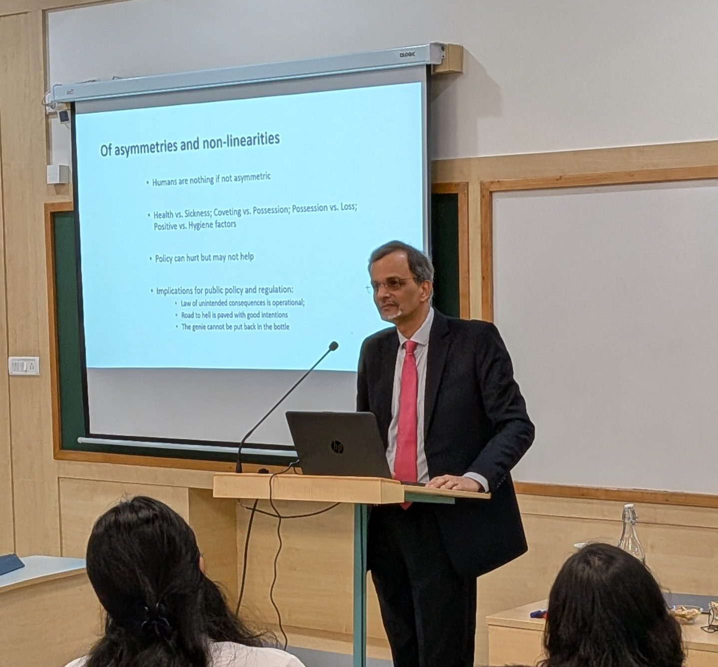 He also spoke about the concept of asymmetries and non linearities in Economics, Life, and Public Policy – highlighting how certain actions, while offering no guarantee of success, have clear asymmetrical risks. He elaborated this point with several examples during the lecture.