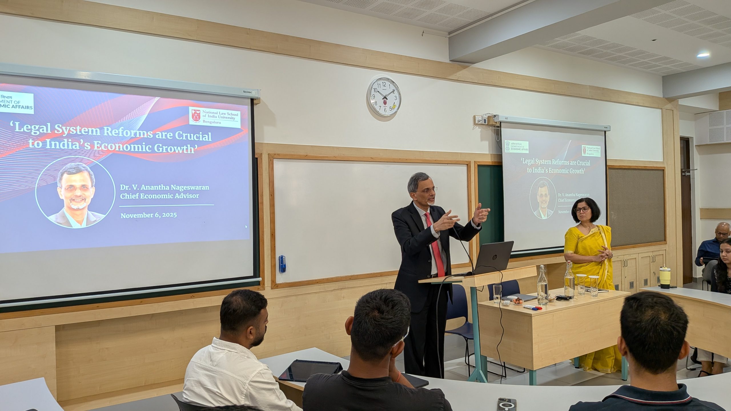 We were delighted to host Dr. V. Anantha Nageswaran, Chief Economic Advisor (CEA), Govt of India, at the NLSIU campus on November 6, 2025, where he delivered a special lecture on the topic ‘Judicial Decision-Making for Viksit Bharat 2047’.