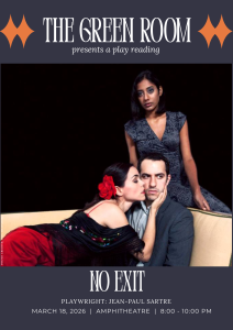 The Green Room, student-led theatre effort at NLS, invites you to the first play reading of the Term, featuring No Exit by Jean-Paul Sartre. This session will take the form of a table read followed by a discussion, as per the details below: